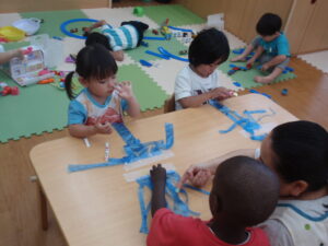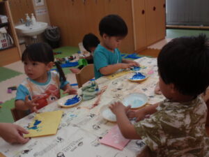 そら組は室内で遊びながら順番に七夕の製作を行いました🌟