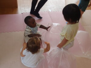ひまわり組は英語の後は、ポリ袋を膨らませてポンポンと遊び