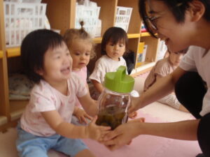最近の子どもたちの一日は梅ジュースときのこのお世話から始まります!