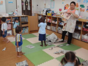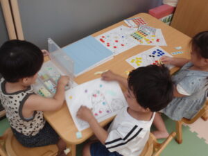 そら組さんは、新聞紙遊びをしたり、シール貼りをしたりと思い思いのやりたい遊びを楽しんでいました🌟