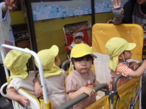 ひまわり組さんは散歩車で園周辺をお散歩しました。