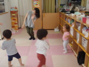 ハローソングや音楽に合わせてジャンプ・スキップなど体を動かした後、