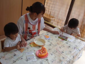 その前に朝の会では、今日お誕生日だったお友だちににみんなで「ハッピバースデー」の歌をプレゼントしました😊とても恥ずかしそうに顔を隠していて可愛かったです😊