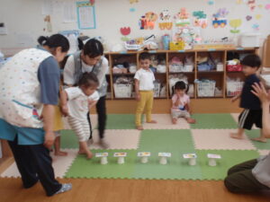 単語を言いながらその上をジャンプしながら渡るゲームも楽しみました。