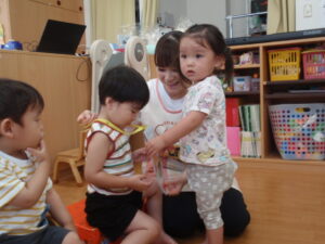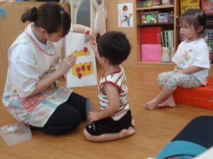 「カードを渡したいお友だち~」の声掛けで手を挙げてくれるお友だちもいました( ´ ▽ ` )ノ