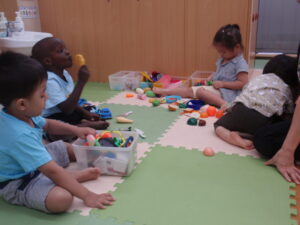 今日はお盆でのお休みのお友だちが多かった為、ひまわり組・そら組合同で過ごしました。