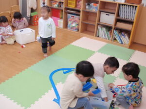 朝方雨が降っていましたが、登園の頃にはやんでみんな元気にきてくれました😊