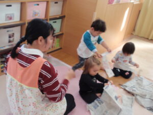 ひまわり組は新聞紙遊びです📚