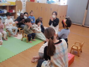 誕生会後は、ひまわり組は園周辺へ散歩へ行き、