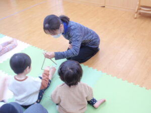 サンタさんが来るように順番にトライアングルを鳴らしました🎅