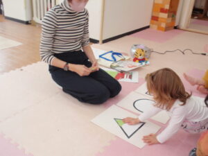 丸、三角、四角から同じ形を見つけて置くゲームもしました✨
