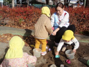 お友だちが作りたいものを協力して作ったりと、お砂場遊びがとても上手になりました👏