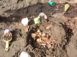 ショベルカーになりきって葉っぱをたくさん集めて遊んでいるお友だちもいましたよ!
