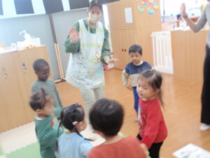 そら組さんは手を繋いで輪になり「ハローソング」からスタートしました。