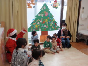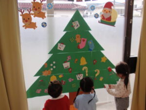 その後は全員でクリスマスツリーにオーナメントを貼って遊びました😊