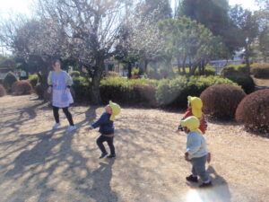 笛の音で出発したり、先生を見つけて集まってきてくれたりと遊び方一つでたくさんの成長をみせてくれました。