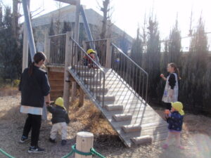 モリパークでは滑り台をしたり、ウッドチップをお菓子に見立ててパーティーをしたりして楽しんでいました☕