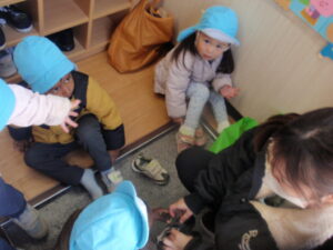 上着、靴下、靴と自分で身の回りのことを済ませ元気よく出発していきましたよ!