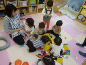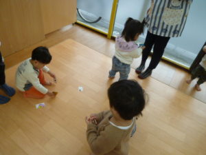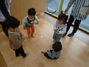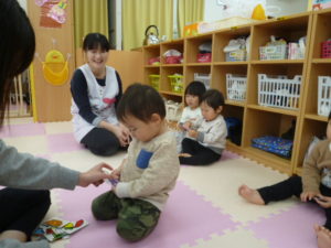 シール貼りでは1歳児さんはあっという間にシールを貼り終え、保育者に