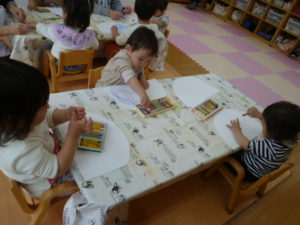 その後はお絵描きとシール貼りを行いました。