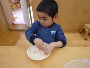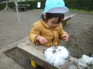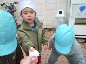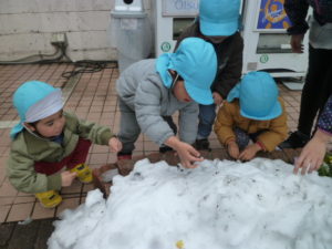 季節外れの雪で子ども達も喜び保育園にもどってからも遊びました。