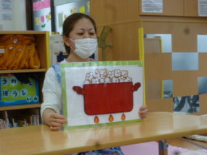 そら組さんからひまわり組さん、順番にお鍋の中を見ました。