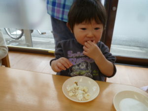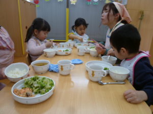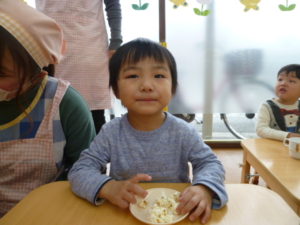 保育園に戻り今日は給食も全員で食べました。