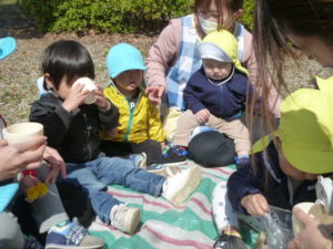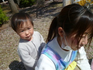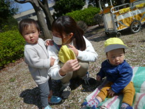 急に外に連れ出されて不安のあまり泣いている子もいましたが公園に着くと安心したようです。