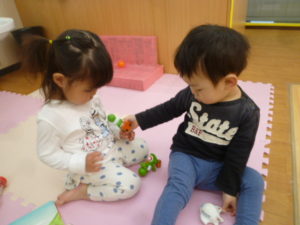 お散歩に行く前に皆で遊びました。