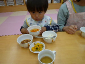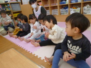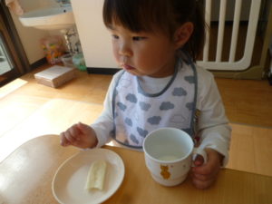 お歌を歌った後は朝おやつを食べました。
