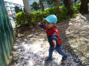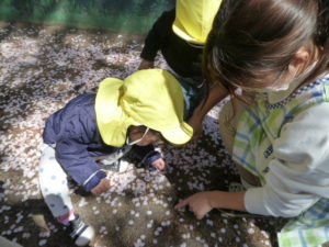 公園にくと桜の花がたくさん落ちていて綺麗で、