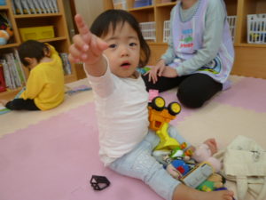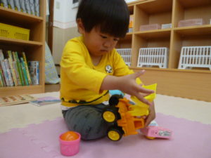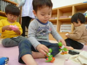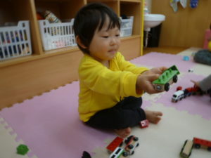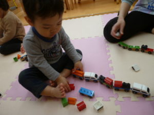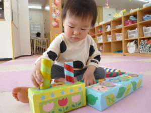 そら組さんもお散歩から帰り玩具で遊んでいました。