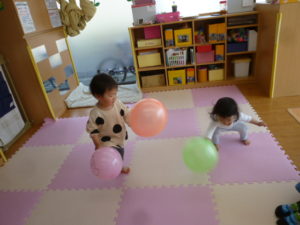 お散歩から帰り、室内でもたくさん遊びました。