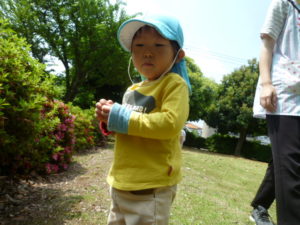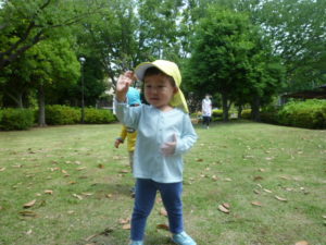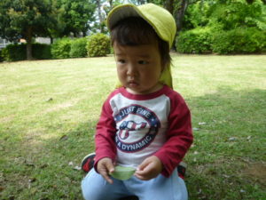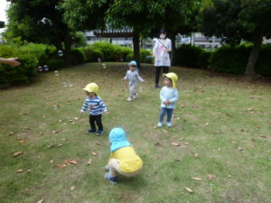 シャボン玉を追いかけたり、日陰で一休みもしました。