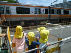 公園に行く前に電車を見に行くと嬉しそうに手を振って
