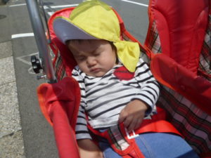 散歩車に乗り揺られていると気持ちよくなったのかお昼寝をしていました。