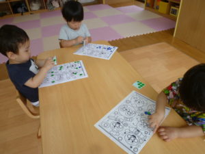 「〇の所に貼るんだよ~」というと、すぐにペタペタ貼り、とても集中していました!