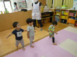 音楽に合わせて、ピタ!っと止まったり、前に進んだりさがったり・・・