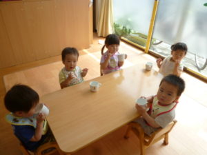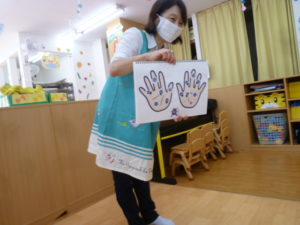 今日は朝おやつの後に保健の先生から手洗いの