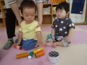 玩具を転がしてみたり、