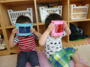 色眼鏡で周りを覗いて遊びました。
